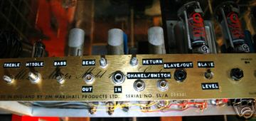 * 1979 Marshall JMP MKII 100 watt lead series head, modified by Todd Langner. The amp was used by guitar player for Greg Allman and Friends. Mods include the extra gain to original channel, addition of second channel with extraordinary amounts of gain, slave in/out, effects loop in/out w/level control -- too much to list. The channels can be blended or they can be switched for independent use.