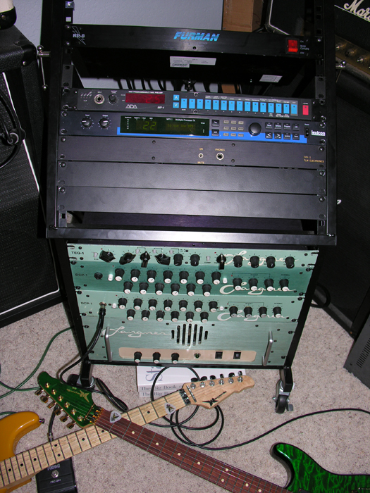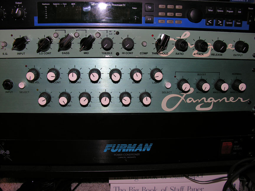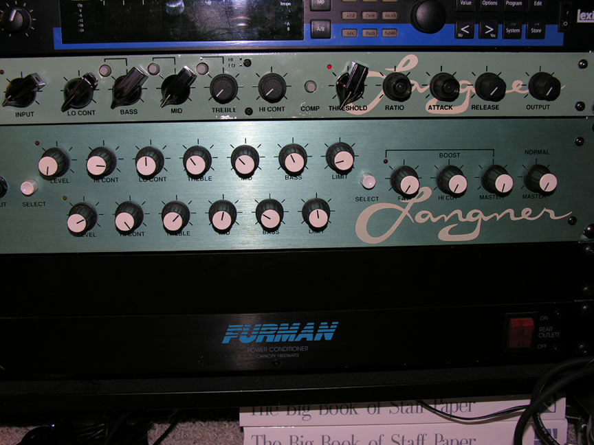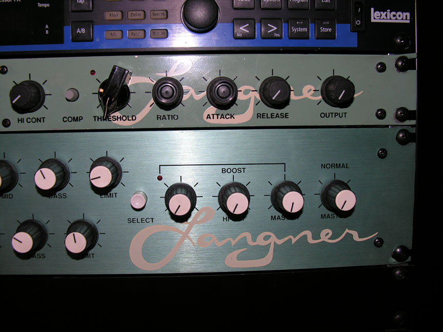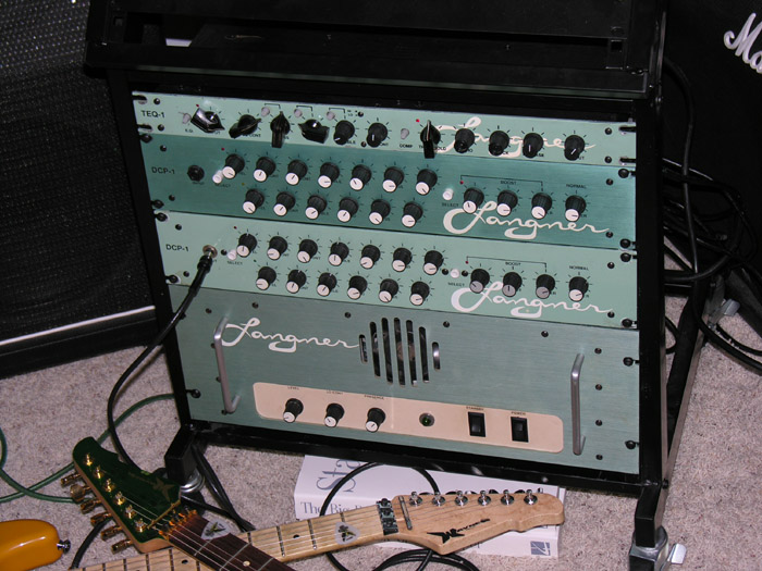 * Three Langner TEQ-1 Final Touch Tube Compressor/EQ's One is hand built, PTP (point to point -- not PCB) and is a single rack space unit (I believe this was the first one built). The other two are a newer version that were actual production -- which is a two space rack unit that is PCB and has a few more mature options that don't require adapters (i.e. actual XLR inputs/outputs, foot switch options to enable or disable the compressor or EQ). All tube equalizer/compressor. The TEQ-1 has a 5-way EQ section with selectable mid-bands and a fully adjustable compressor. Balanced and unbalanced inputs and outputs enable the T.E.Q.-1 to be used as a mic pre-amp as well as an outboard instrument equalizer. I believe this is the first one made (of maybe 6 to 10 total?), and was the unit at the NAMM show (or so I'm told by several trusted sources). All I have to say, is that until I used this, I didn't know what I was missing. Really, I thought something sounded great (and it would), but I'd just run this through the effects loop or a preamp into it before the power amp, and it really blows you away with how much better it'll make any other gear sound. I've not yet put it through the effects loop on either of my Langner modified heads, but I'm pretty sure once I do I'll not be able to go back to playing without it--I am not kidding. Very impressive unit here!