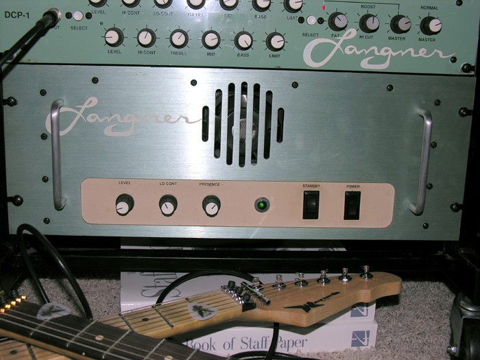 * Langner DCP-1 Elite preamp. Built by Todd Langner, the Elite has all the same features as the DCP-1 Creator (above), with an added high-gain/low-gain function enabling 8 pre set sounds for increased versatility. I actually just still need to swap out the 220v power transformer taps to 120v and swap out that funky German power cord (I got this from a guy in Germany). This clean channel is far better than the DCP-1 Creator, but the overdrive channel isn't quite as good--still good, but a different sound.