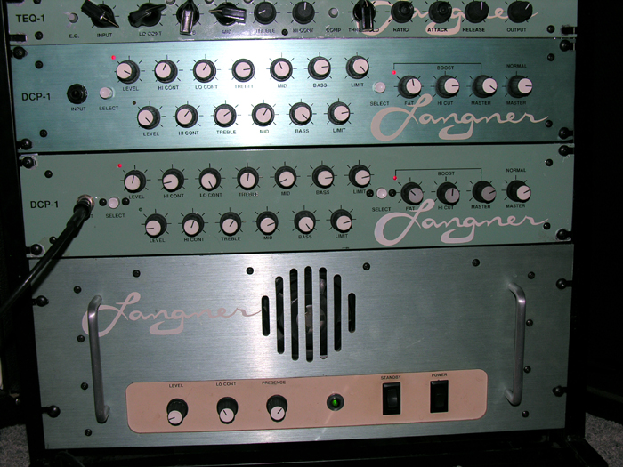 * Two Langner DCP-1 Creator preamps Built by Todd Langner, all tube guitar preamp. Two independent channels with fully adjustable boost function enables four pre-set sounds. The DCP-1 uses five 12ax7a tubes to produce the glassiest cleans to the highest of high gain tones. Pre sets can be front panel selected or footswitched. These two are one of the first one's made (literally, the first and second one's made) and might be considered pre-production. This thing's overdrive and boost channels eat the DCP-1 Elite up! But, the Elite has a better sounding clean channel. That might be the tubes they are running though, I've not yet checked (don't get me wrong, the Elite's overdrive is great).